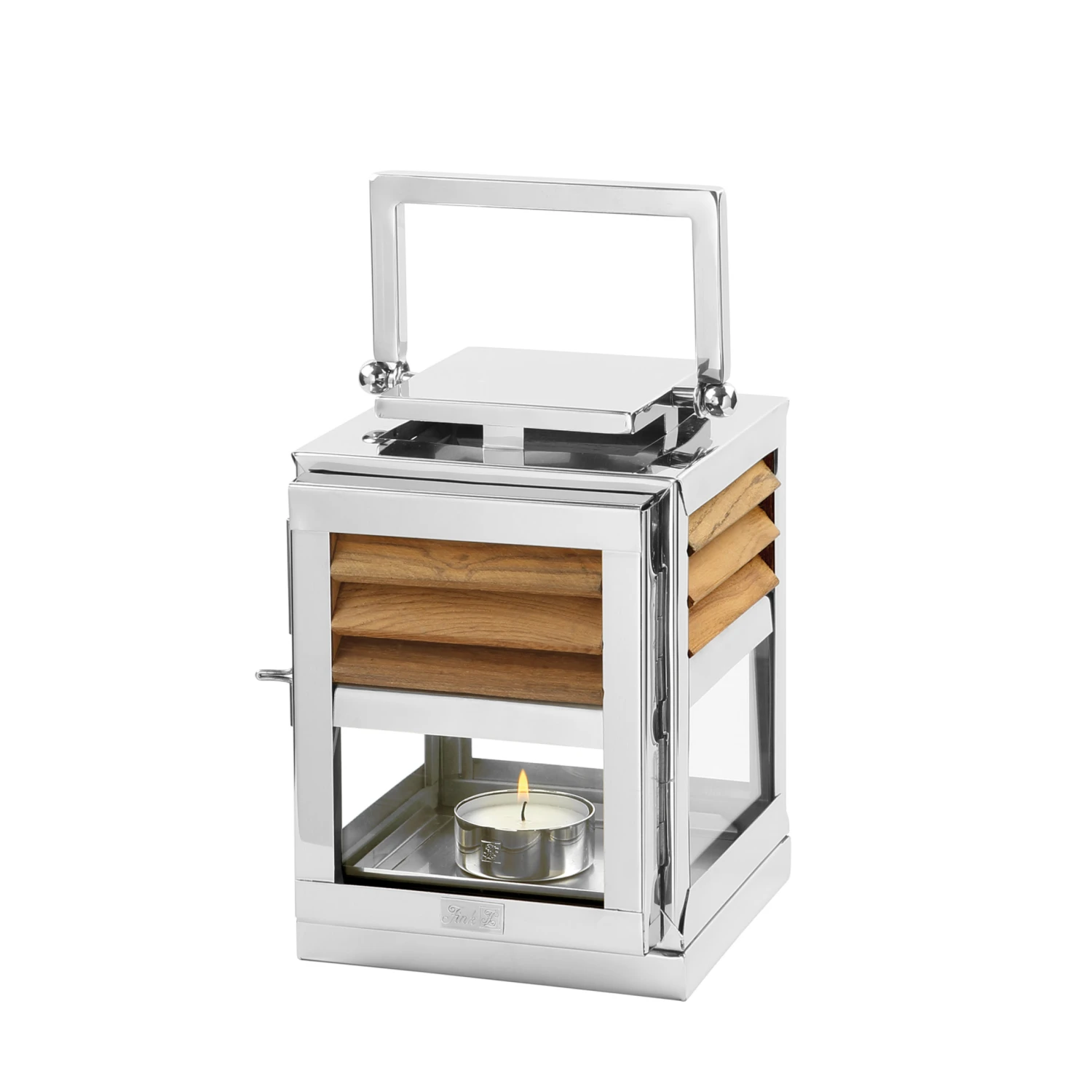 Fink GENUA Laterne Material: Edelstahl mit Teak Objekte von Fink Living garantieren jedem Raum ein Flair von Finesse und Exklusivität. Seit mehr als 25 Jahren steht das Unternehmen aus Bocholt für höchste Qualitätsansprüche, extravagantes Design und bestes Material. Hochwertige Laternen als auch andere Designobjekte von Fink werden nach jedem Arbeitsdurchgang von Hand kontrolliert und – wenn nötig – nachbearbeitet. Jedes Handwerksstück von Fink ist ein Unikat. Kleine Unregelmäßigkeiten in Form, Farbe oder Oberfläche entstehen bei der handwerklichen Fertigung und machen den besonderen Reiz dieser exklusiven Designerstücke aus. Mit der Fink Laterne Genua bereichern Sie Ihr Wohnambiente durch einen stilvollen Eyecatcher, der eine behagliche Atmosphäre verbreitet. Pflege: <3>Was uns an der Fink Laterne Genua besonders gefällt Die geradelinige Laterne ist mit ihrer Optik aus Edelstahl ein echtes Einzelstück. Uns persönlich gefällt die lamellenförmige Anordnung des Teak-Holzes, welches dem makellosen Look der hochwertigen Laterne etwas Natürliches verleiht. |
