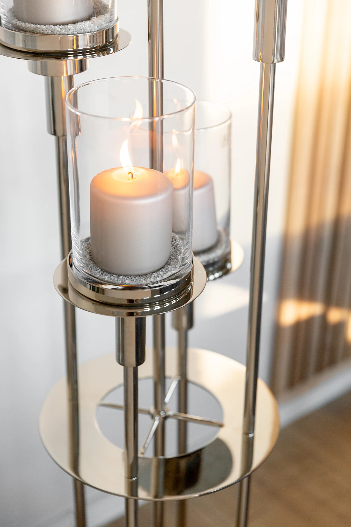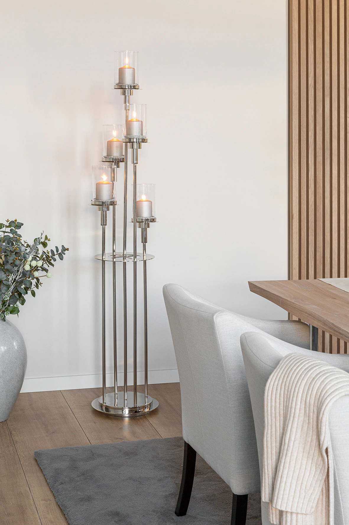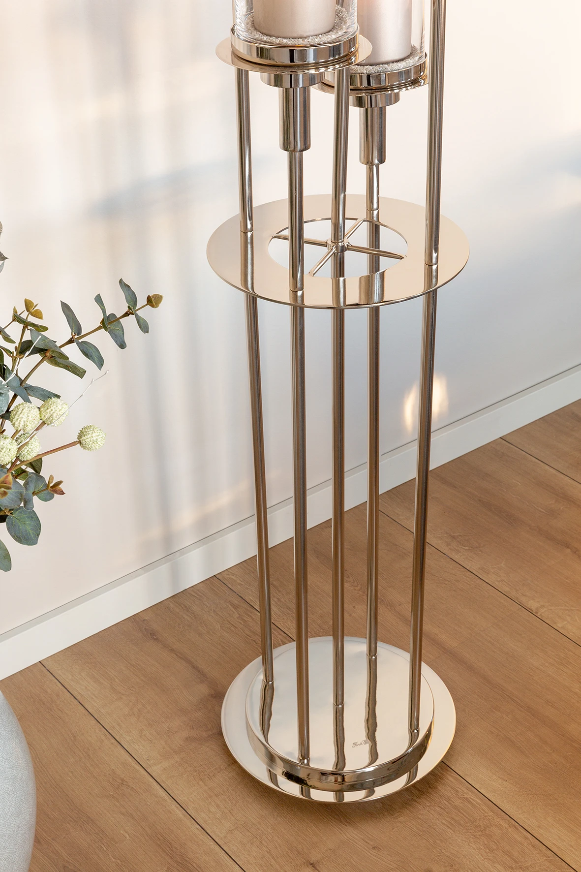 Fink Living Bodenleuchter LONDRA Material: Edelstahl vernickelt 5flm mit Glas Schlicht, aber trotzdem ein absolutes Highlight: Der Bodenleuchter LONDRA hat Statementcharakter. Hochwertige Glaszylinder mit Boden schützen vor Ruß und Wachsspritzern und runden den Look ab. Zur Weihnachtszeit lässt sich der Kerzenhalter in der Mitte abschrauben. So haben Sie mit wenigen Handgriffen einen exklusiven 4-flammigen Adventsleuchter für Ihr Zuhause. Jedes einzelne Stück wird in aufwendiger, traditioneller Handarbeit gefertigt und es entstehen individuelle Unikate, die ihre ganz eigene Herstellungsgeschichte besitzen. |