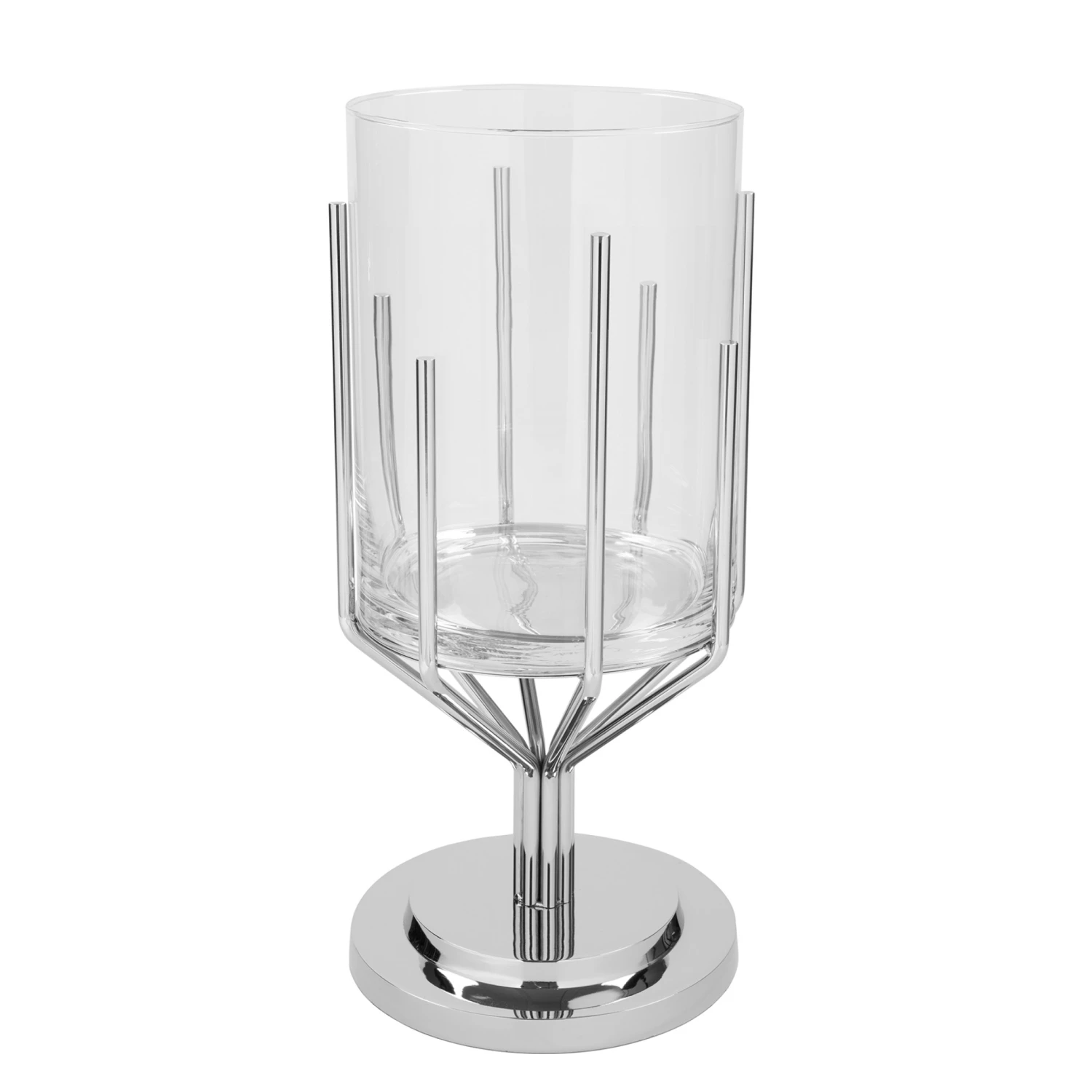 Fink Living Bodenwindlicht LUXOR IMaterial: Gestell vernickelt, Glas klar Das neue Bodenwindlicht von Fink Living LUXOR ist ein absolutes Highlight! Das Windlicht ist zweiteilig und besteht aus einem silberfarbenen Gestell (vernickelt) und aus einem mundgeblasenen Glas mit Boden. Das Windlicht hat durch den großen Fuß und durch sein Gewicht einen sicheren Stand und kann bedenkelos am Boden plaziert werden. Luxor kann mit einer Stumpenkerze bestückt werden oder auch als Vase verwendet werden. Das Glas ist zum herausnehmen und kann so leicht gereinigt werden. Fink Produkte: – hochwertige Handarbeit |