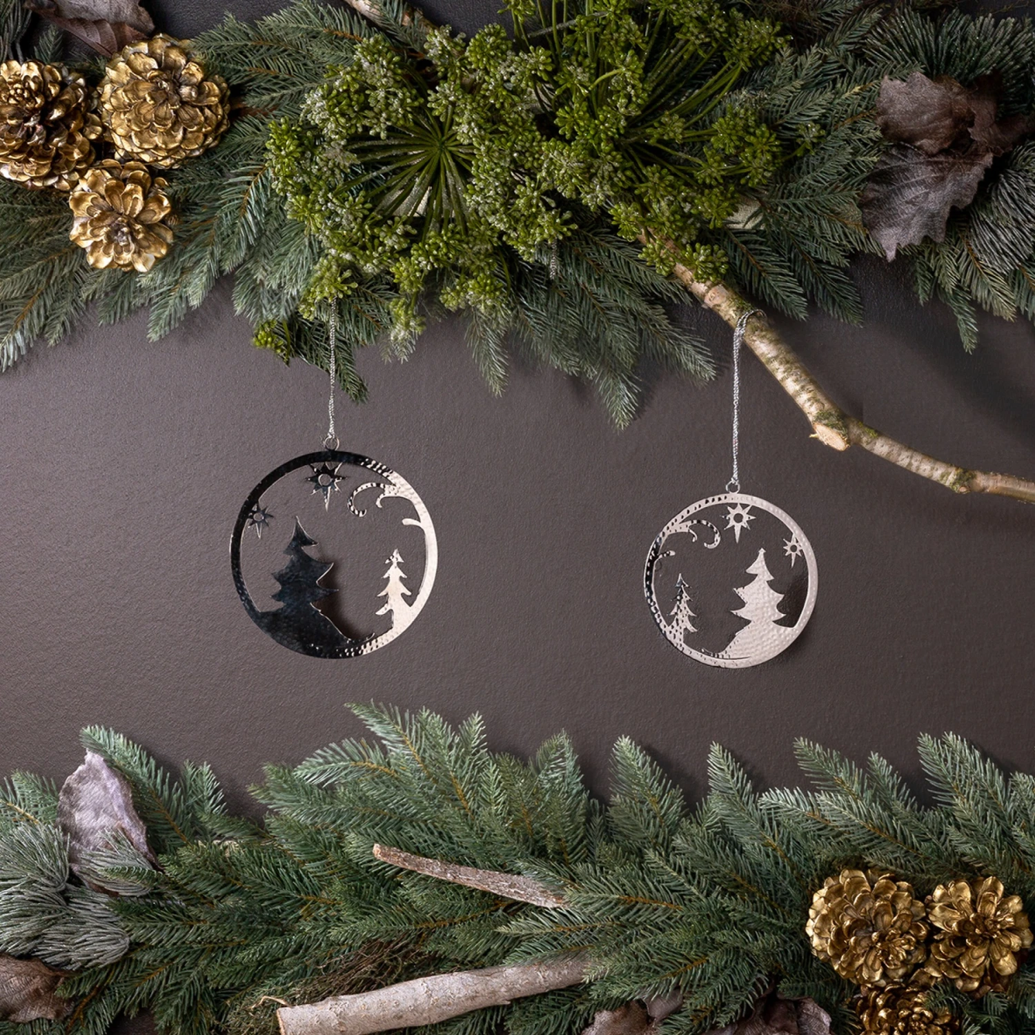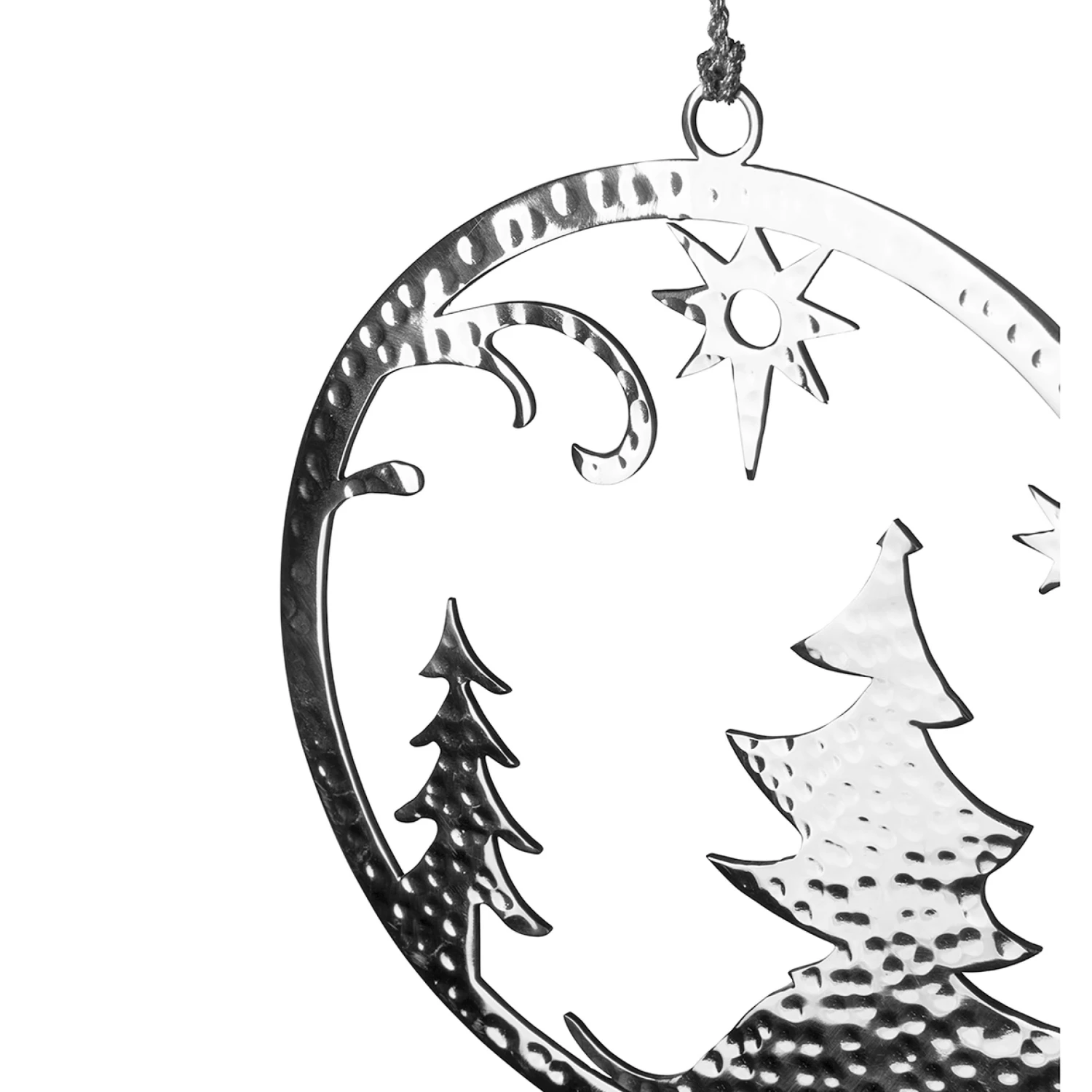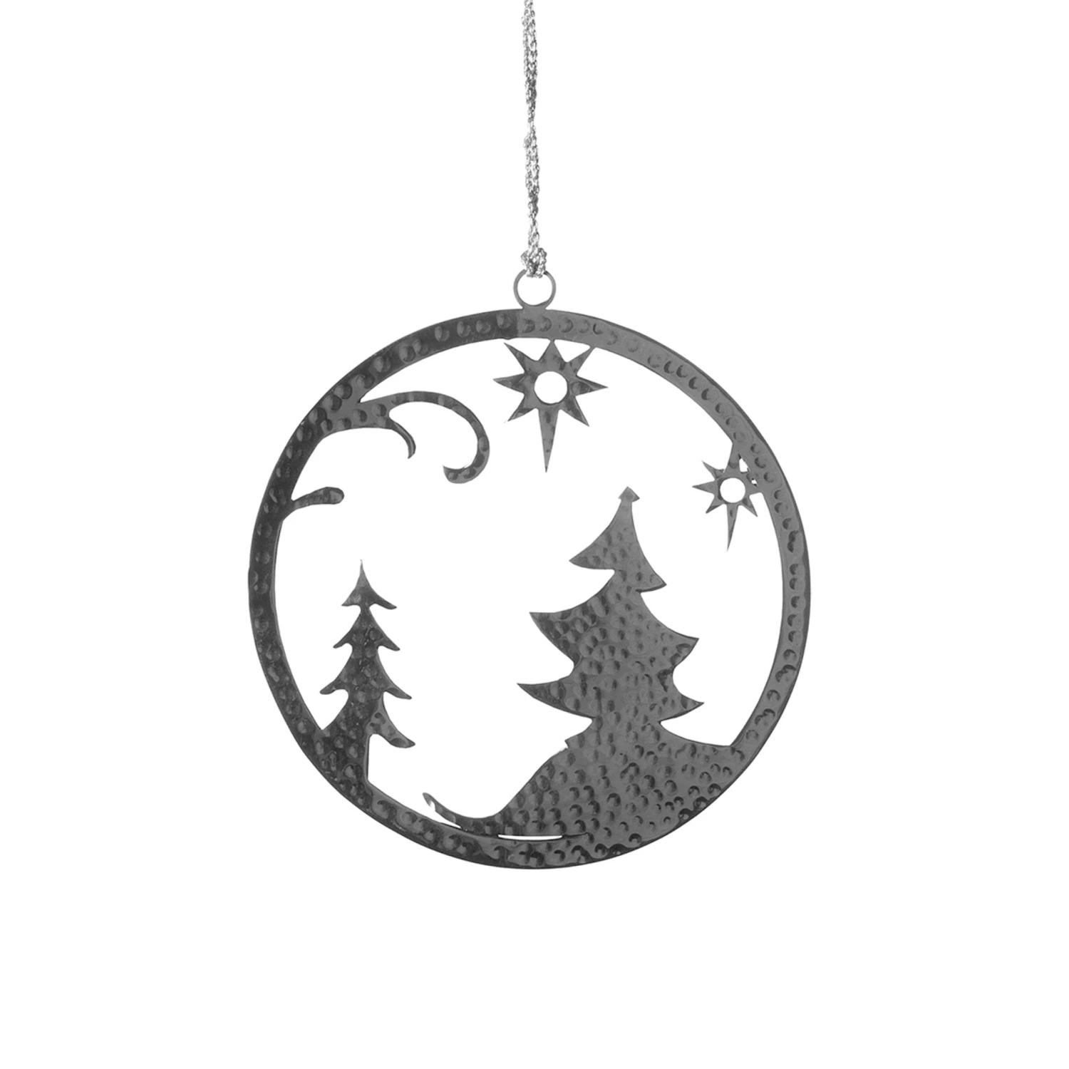 Fink Living Deko-Anhänger NEVO Material: Edelstahl Mit dem liebevollen Motiv einer winterlichen Silhouette aus glänzendem Edelstahl gefertigt sind die runden Anhänger NEVO die richtige Wahl für den Fenster- und Christbaumschmuck – auch im Outdoorbereich. Die in aufwendiger, traditioneller Handarbeit gefertigte Hammerschlagstruktur stellt ein besonderes Detail dar und macht jedes Stück zu einem Unikat. Zwei Größen sind erhältlich |