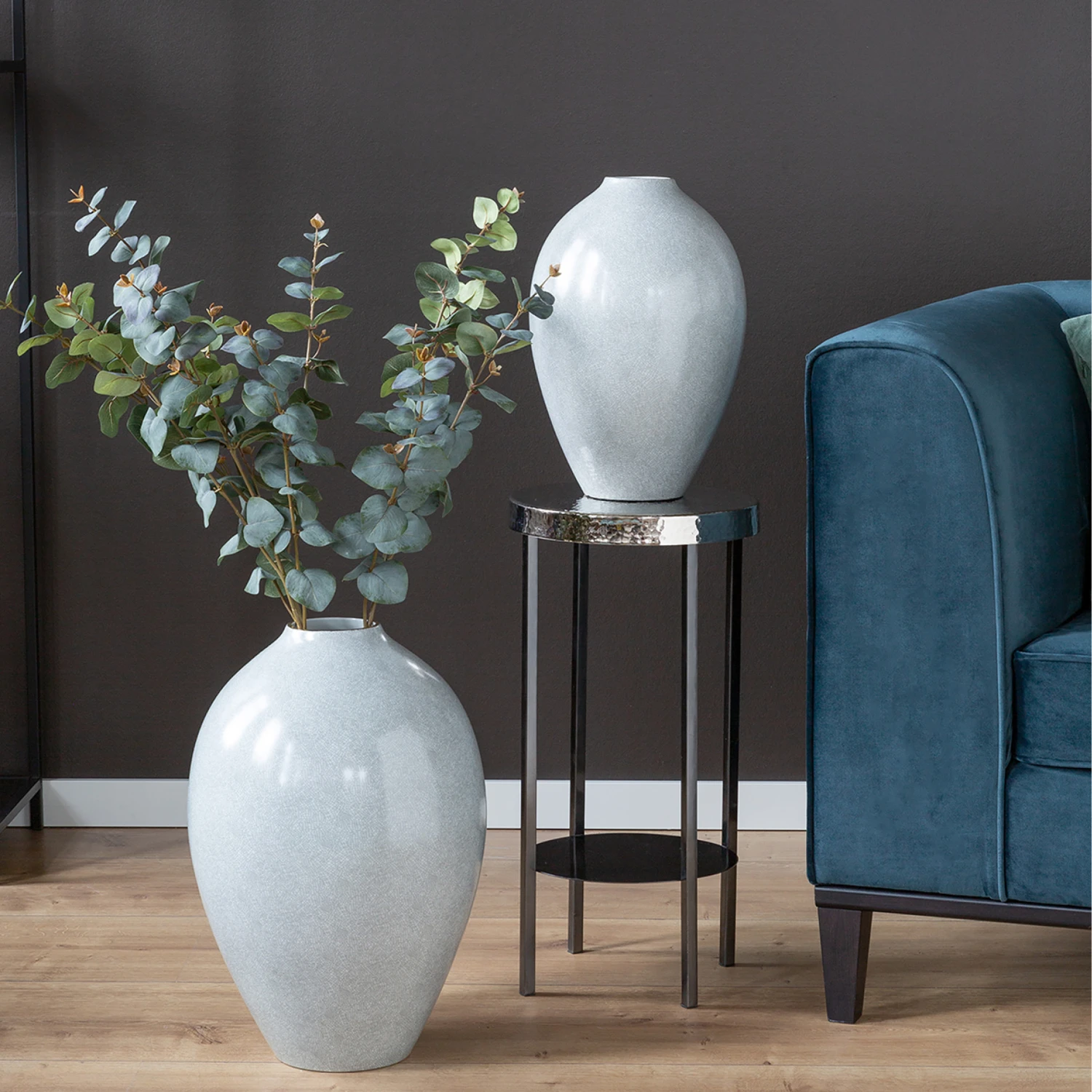 Fink Living Dekosäule SULTAN Material: Aluminium, Eisen, galvanisierter, vernickelt Die Dekosäulen SULTAN überzeugen auf den ersten Blick mit einem minimalistischen und klaren Erscheinungsbild, auf den zweiten Blick offenbaren sie ihre charmanten Details. Der kontrastvolle Materialmix und das Zusammenspiel verschiedener Oberflächenstrukturen prägen die Optik dieser hochwertigen Wohnaccessiores. Das Gestell mit matt gebürstetem Finish besitzt einen kühlen und eleganten Look, die glänzend veredelte Oberfläche ist mit einer kunstvollen Hammerschlagstruktur versehen. Die Säulen eignen sich für Blumen, Skulpturen und viele weitere Dekorationsideen und sind in zwei unterschiedlichen Höhen – die sich auch hervorragend miteinander kombinieren lassen – erhältlich. Jedes einzelne Stück wird in aufwendiger, traditioneller Handarbeit gefertigt und es entstehen individuelle Unikate, die ihre ganz eigene Herstellungsgeschichte besitzen. |