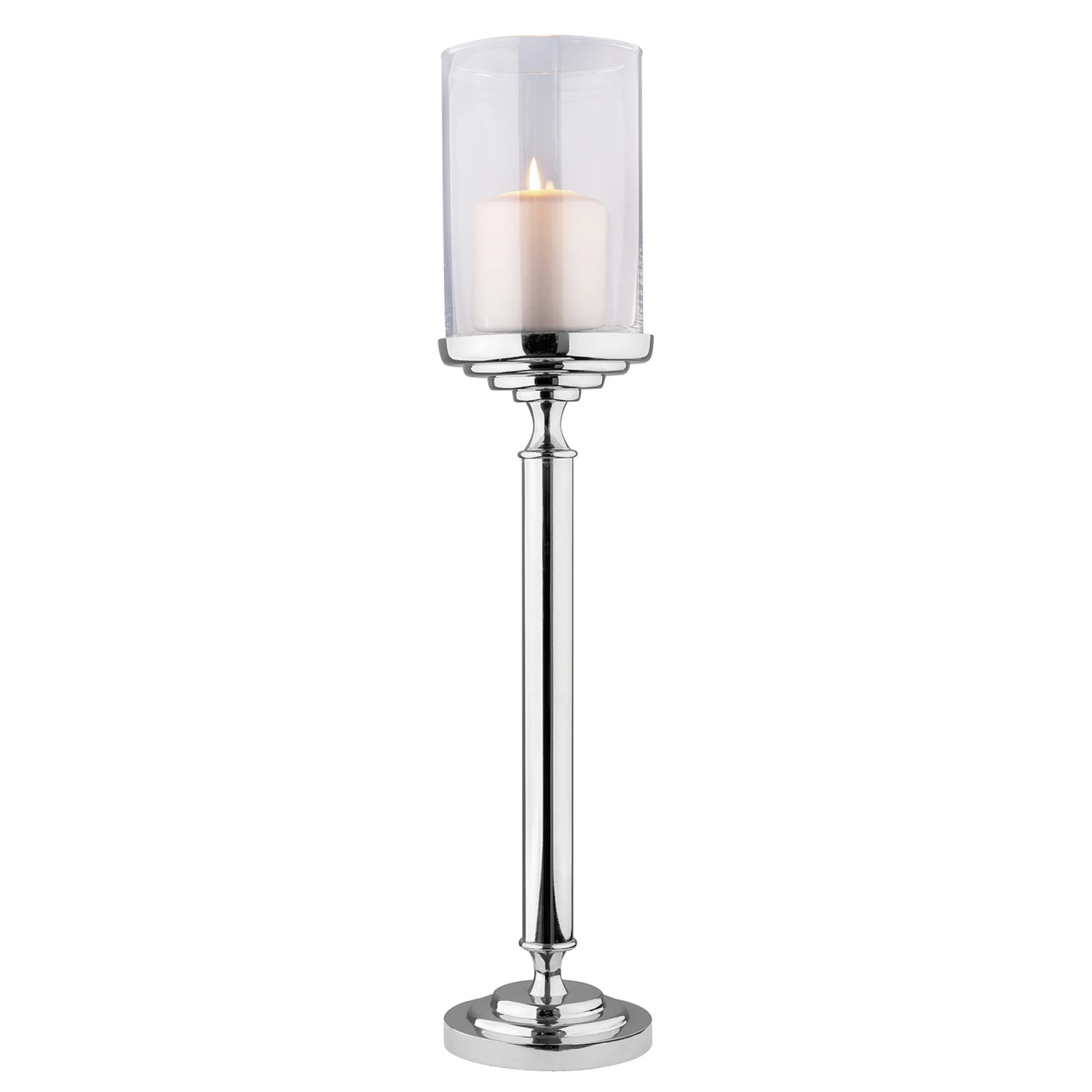 Fink Living Kerzenhalter mit Glas FARET Material: Aluminium, vernicklet, Glas Maße: H 60cm, D 13cm Geeignete Kerzenhöhe: D 8cm, H 10cm Hinweis: Das Windlicht wird ohne Kerze geliefert |