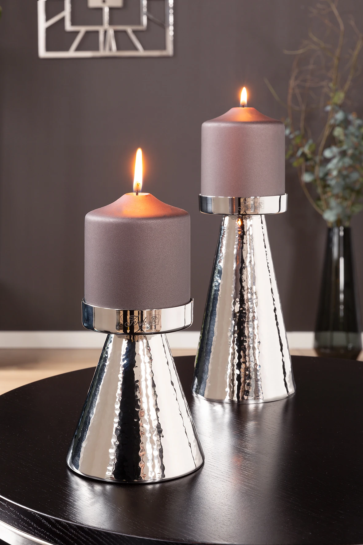 Fink Living Kerzenhalter YAMA Material: Edelstahl gehämmert Geeignet für Stumpenkerzen D 10cm Der Kerzenhaltern YAMA setzt im Handumdrehen Glanzpunkte und sorgt für wärmende Momente und eine kuschelige Atmosphäre. Markante Design-Details – wie die in handwerklicher Arbeit gefertigte Hammerschlagstruktur oder die unverkennbare, geometrische Formensprache – machen sie zu unkonventionellen High-Class-Wohnaccessoires, die gekonnte Statements in jedem Wohnbereich setzen. Die Kerzenhalter können optional auch mit passendem Glas und Teelicht verwendet werden. |