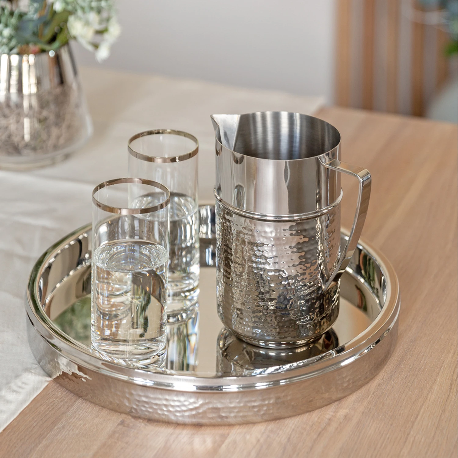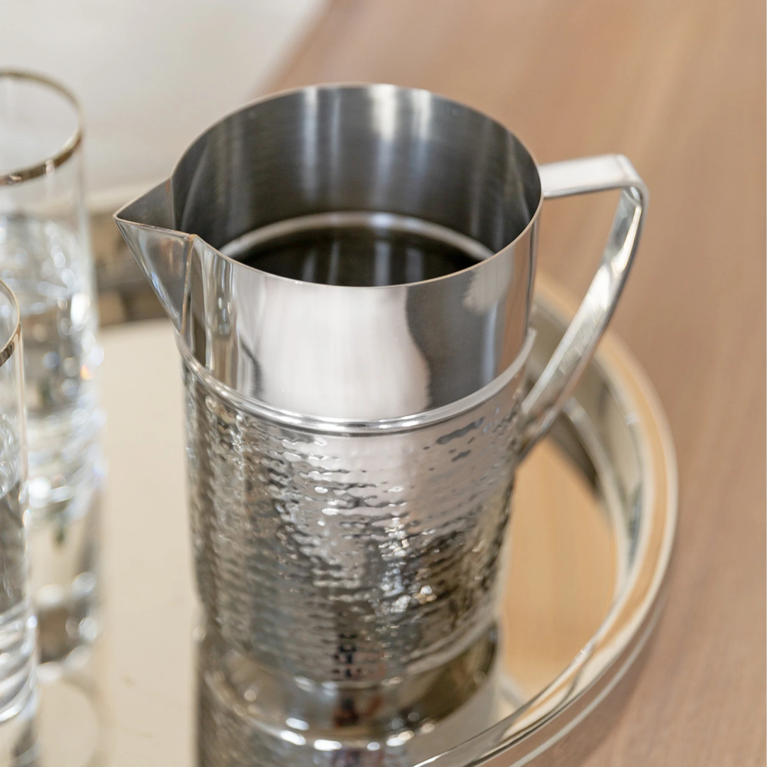 Fink Living Krug NASSAU Material: Edelstahl, gehämmert Der Wasserkrug NASSAU ergänzt die gleichnamige Serie NASSAU um ein weiteres Accessoire für gepflegte Tischkultur und bedient höchste Stil- und Qualitätsansprüche. Der Krug ist aus lebensmittelechtem und pflegeleichtem Edelstahl gefertigt. Das moderne zeitlose Design und der Kontrast zwischen der glatten Oberfläche und der feinen Hammerschlagstruktur machen den NASSAU Krug zu einem Highlight auf jedem gedeckten Tisch. Jedes einzelne Stück wird in aufwendiger, traditioneller Handarbeit gefertigt und es entstehen individuelle Unikate, die ihre ganz eigene Herstellungsgeschichte besitzen. |