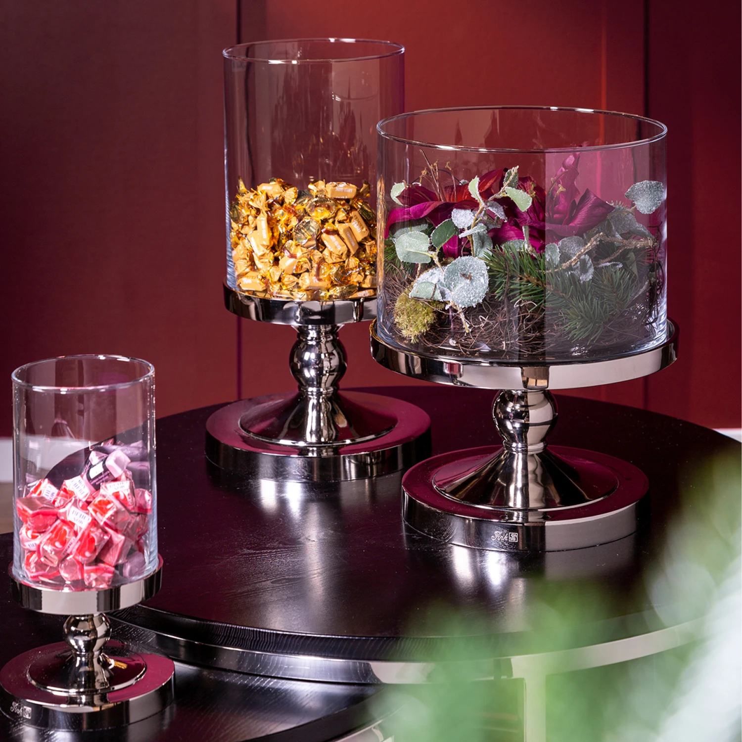 Fink Living Windlicht Lamonte Material: Aluminium, vernicklet, Glas Maße: H 45cm, D 25cm Geeignete Kerzenhöhe: D 8cm, H 15cm Das Windlicht LAMONTE ist optimal für Stumpenkerzen geeignet, aber auch für saisonale, florale Arrangements. LAMONTE gibt es in zwei Größen, ein Highlight in Kombination. Jedes einzelne Stück wird in aufwendiger, traditioneller Handarbeit gefertigt. Hinweis: Das Windlicht wird ohne Kerze geliefert |