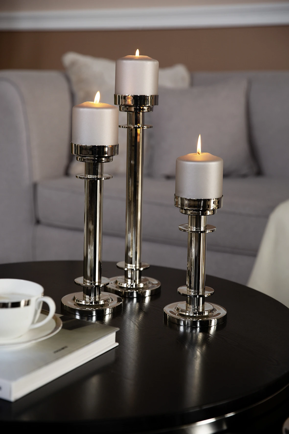 Fink Living Leuchter RICARDOMaterial: Aluminium, vernickelt Glaszylinder ist optional. (Nr. 113001) Der Leuchter RICARDO beeindruckt durch eleganten Glanz und mit einem zeitlosen schönem Design sowie charmanten Details. Eine reliefartige Rillenstruktur schenkt seiner Oberfläche sowohl optische als auch haptische Akzente. |