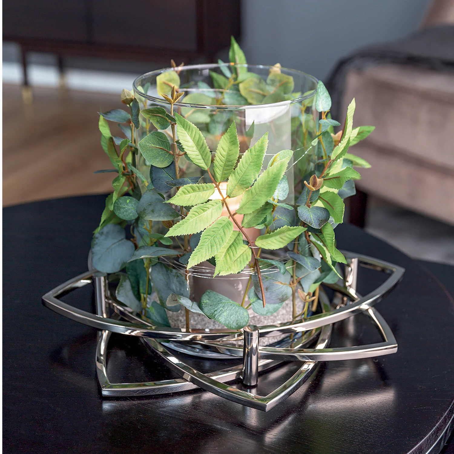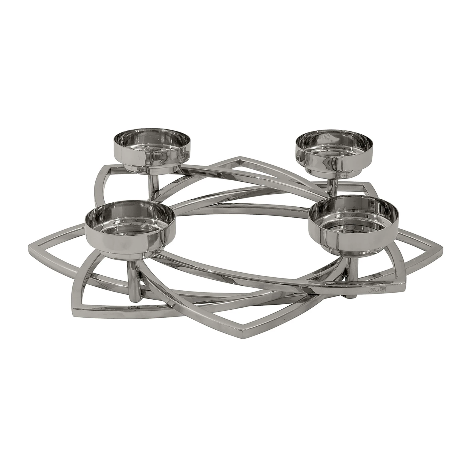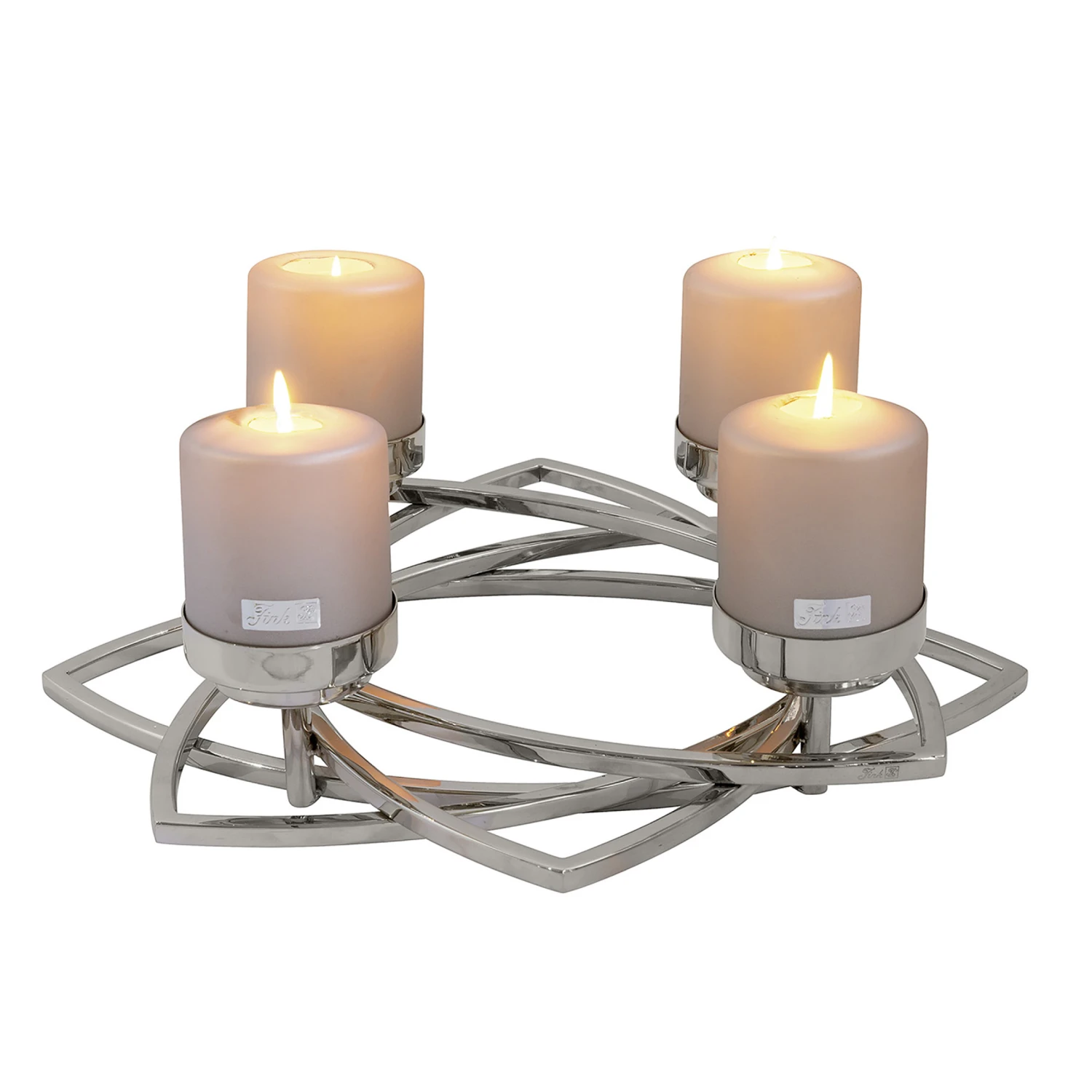 Fink Living Leuchterkranz ZAPPORAMaterial: Aluminium, vernickelt Glaszylinder für die Mitte optional erhältlich. Der ZAPPORA Leuchterkranz erinnert an einen Stern. Zappora kann wunderbar als Adventskranz verwendet werden. Die Stumpenhalter können entfert werden und der Kranz dient als Dekokranz – z.B mit einem Glaszylinder in der Mitte für eine Kerze oder Deko. |