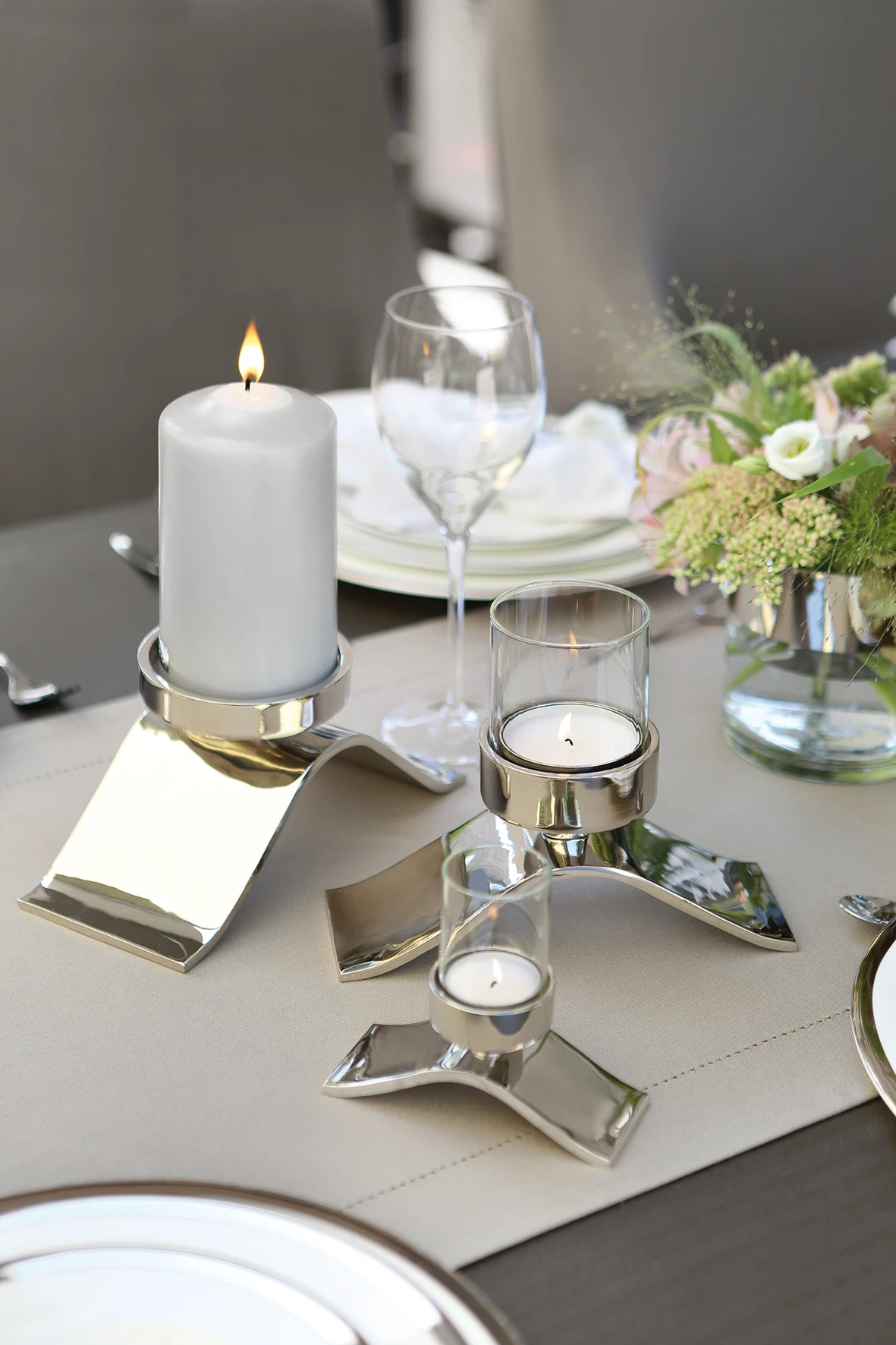 Fink – WAVE Maxi-Teelichthalter Material: vernickelt Inkl. 1 x Glasaufsatz Der elegante Kerzenleuchter Wave von Fink mit wellenförmigen Design hat einen Halter für Teelichter. Der Wave ist elegant und schlicht zugleich und mit seiner vernickelten Oberfläche sehr pflegeleicht. Fink Produkte: – hochwertige Handarbeit Produktinformation vernickelte Artikel: Jeder einzelne Artikel wird nach jedem Arbeitsgang immer wieder kontrolliert und gegebenenfalls nachbearbeitet. Wir möchten Sie darauf hinweisen, dass vernickelte Artikel nicht outdoorgeeignet sind. Pflegeanleitung für vernickelte Artikel: Zur Reinigung empfehlen wir Ihnen ein spezielles Produkt aus der Fink-Pflegeserie. Das Premium Pflegetuch CARE ist speziell für die Reinigung von Metalloberflächen wie Edelstahl, vernickelter oder anlaufgeschützter Silberware sehr gut geeignet. CARE ist extrem langlebig, strapazierfähig und ebenfalls zur gründlichen Reinigung von Glas, Kristall, Porzellan, Marmor, Edelstahl, Fliesen, Acryl, Keramik, Holz, Monitore, Kunststoff, Chrom, Aluminium, Messing,Lack u.v.m. geeignet. Fingerabdrücke auf mattierten Flächen werden problemlos entfernt. |