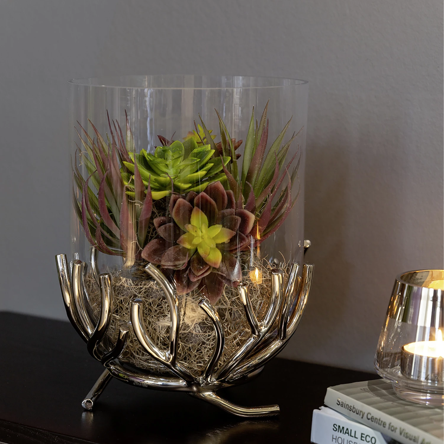 Fink Living Windlicht RAMUSMaterial: Aluminium, vernickelt, Glas Sie lieben modernes, besonderes Design? Dann treffen die Wohnaccessoires aus der Serie RAMUS ganz sicher Ihren Geschmack. Die Optik dieses Windlichtes ist von der Natur inspiriert: Das Glasgefäß wird von silbern glänzenden Verästelungen gehalten. Das Windlicht für eine Stumpenkerze ca. H 15cm geeignet. Kann aber auch als Vase verwendet werden. |