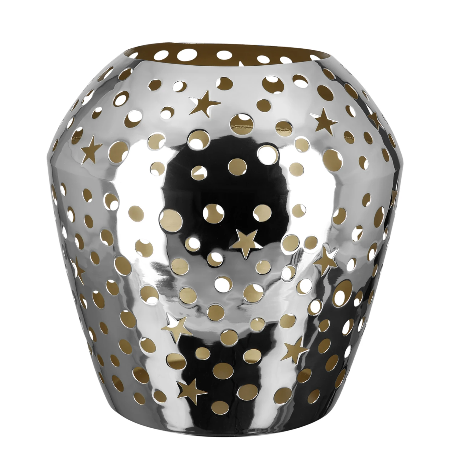 Fink Living SHEILA Windlicht Material: vernickelt Besonderheiten: Goldene Innenbeschichtung für stimmungsvolles Licht Das stilvolle Windlicht verbreitet festliche Stimmung im ganzen Raum. Durch das Muster entsteht ein schönes Licht-/ Schattenspiel in der Abenddämmerung. Die goldfarbene Beschichtung im Innern sorgt für ein gemütliche und warme Atmosphäre. Das festliche Windlicht SHEILA wurde in aufwendigen Arbeitsabläufe von hand gefertigt und hat dadurch einen Unikatscharakter. |