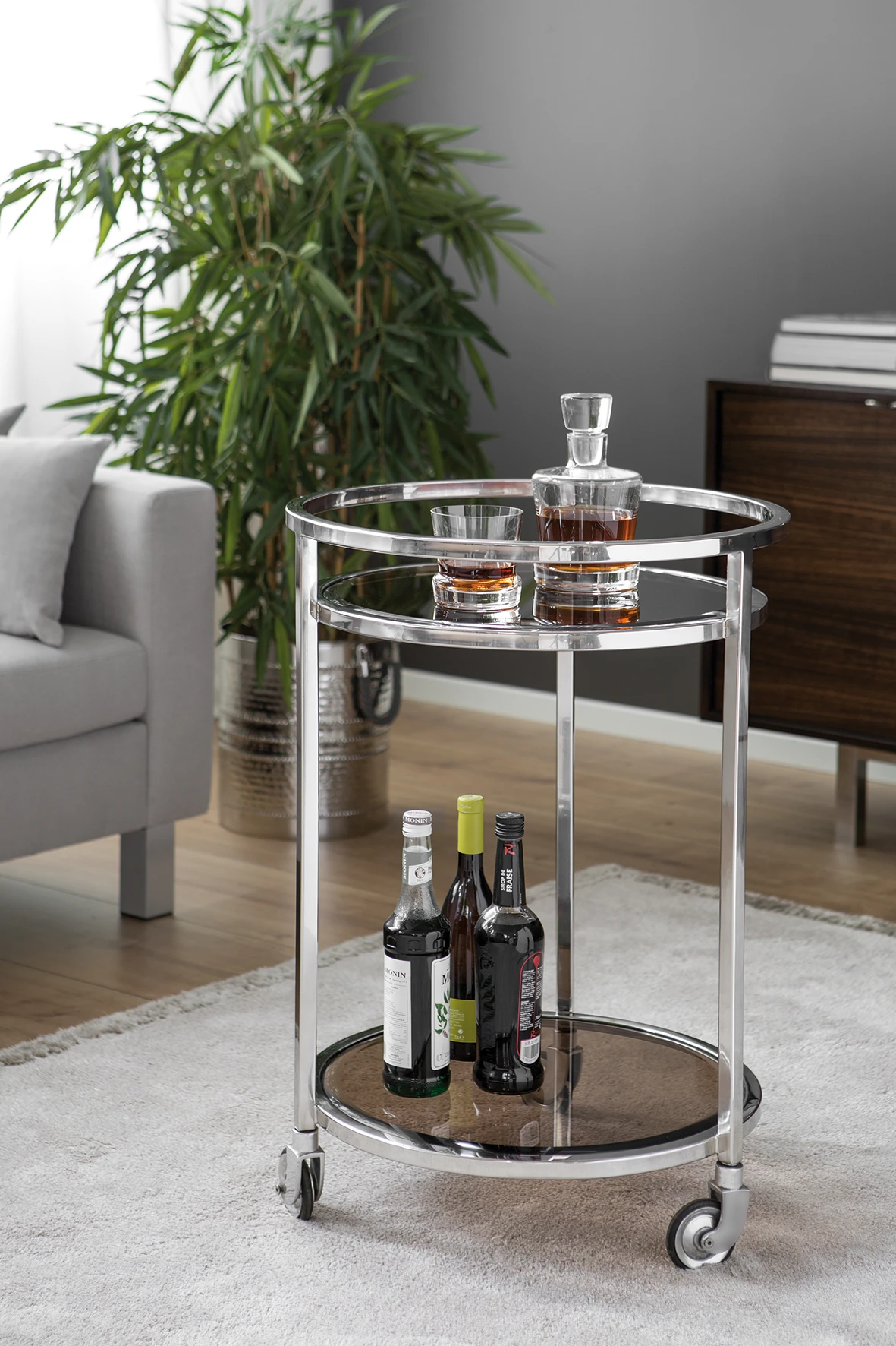 Fink Living Barwagen SIENA Material: Edelstahl, Glas transparent braun Ein Servierwagen ist nicht nur ein schönes sondern auch ein überaus nützliches Wohnaccessoire. Als Beistelltisch bietet er praktische Ablage- und Abstellflächen für Getränke, Snacks oder Lektüre und bei Bedarf ist er im Nu an den richtigen Platz geschoben. Die großzügigen Glasablageflächen bieten dabei Platz für viel Kreativität: Wenn Sie Ihren Gästen eine große Auswahl an Getränken bieten möchten, wird der Servierwagen – mit Flaschen, Karaffen und Gläsern bestückt – im Handumdrehen zu einer raffinierten Mini-Bar und auch mit einer kleinen Blumendekoration macht er eine gute Figur. |