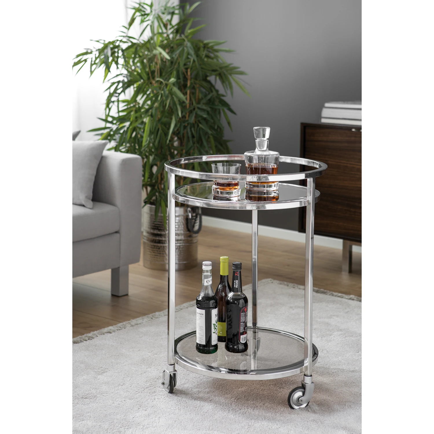 Fink Living Barwagen SIENA Material: Edelstahl, Glas klar Ein Servierwagen ist nicht nur ein schönes sondern auch ein überaus nützliches Wohnaccessoire. Als Beistelltisch bietet er praktische Ablage- und Abstellflächen für Getränke, Snacks oder Lektüre und bei Bedarf ist er im Nu an den richtigen Platz geschoben. Die großzügigen Glasablageflächen bieten dabei Platz für viel Kreativität: Wenn Sie Ihren Gästen eine große Auswahl an Getränken bieten möchten, wird der Servierwagen – mit Flaschen, Karaffen und Gläsern bestückt – im Handumdrehen zu einer raffinierten Mini-Bar und auch mit einer kleinen Blumendekoration macht er eine gute Figur. |