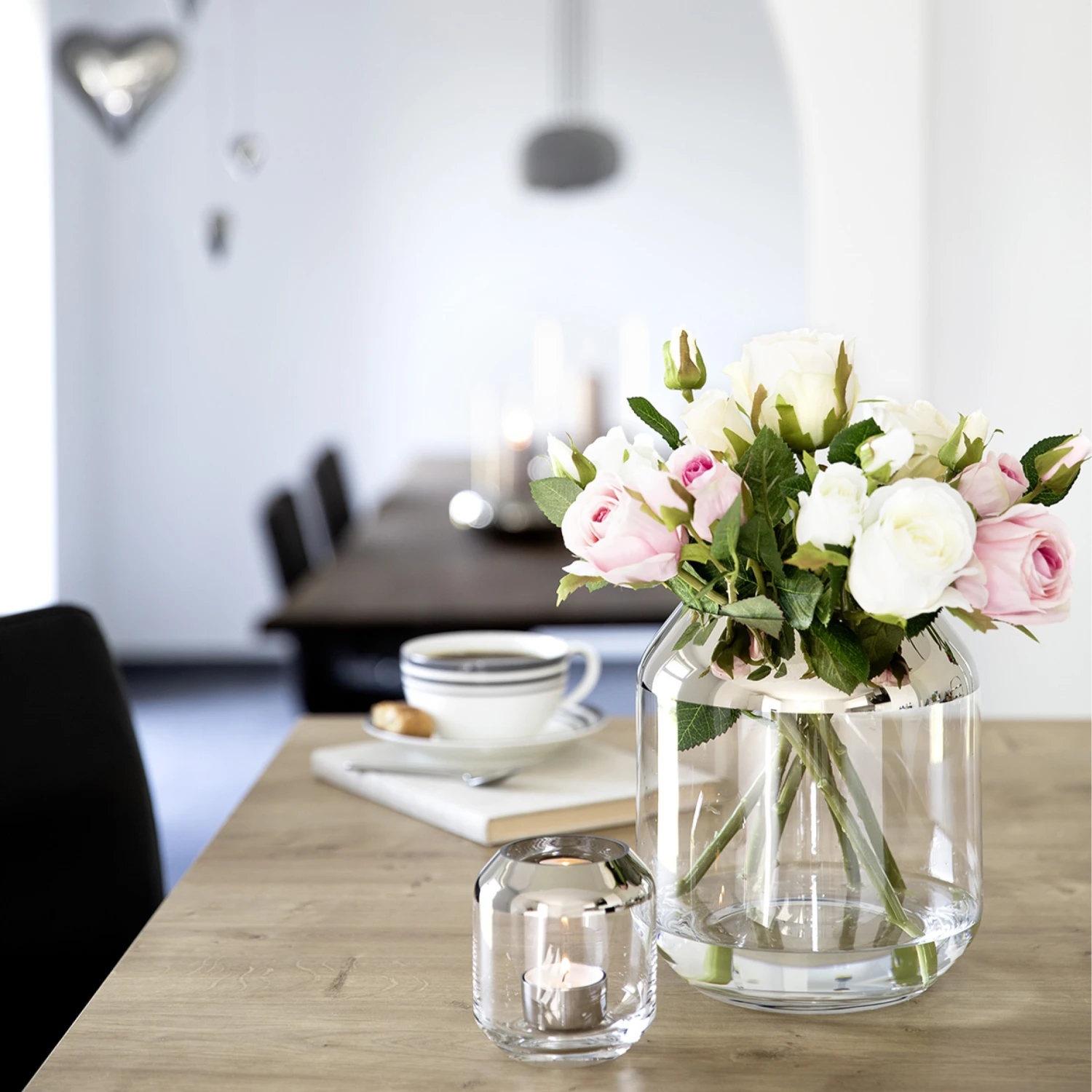 Fink Living SMILLA Teelichthalter/ Windlicht Material: Glas, Silberfarbener Rand Für Teelichter geeignet. Pflege: nicht spühlmaschinengeeignet, Oberfläche mit klarem, warmem Wasser reinigen, verwenden Sie ein weiches Baumwolltuch. |