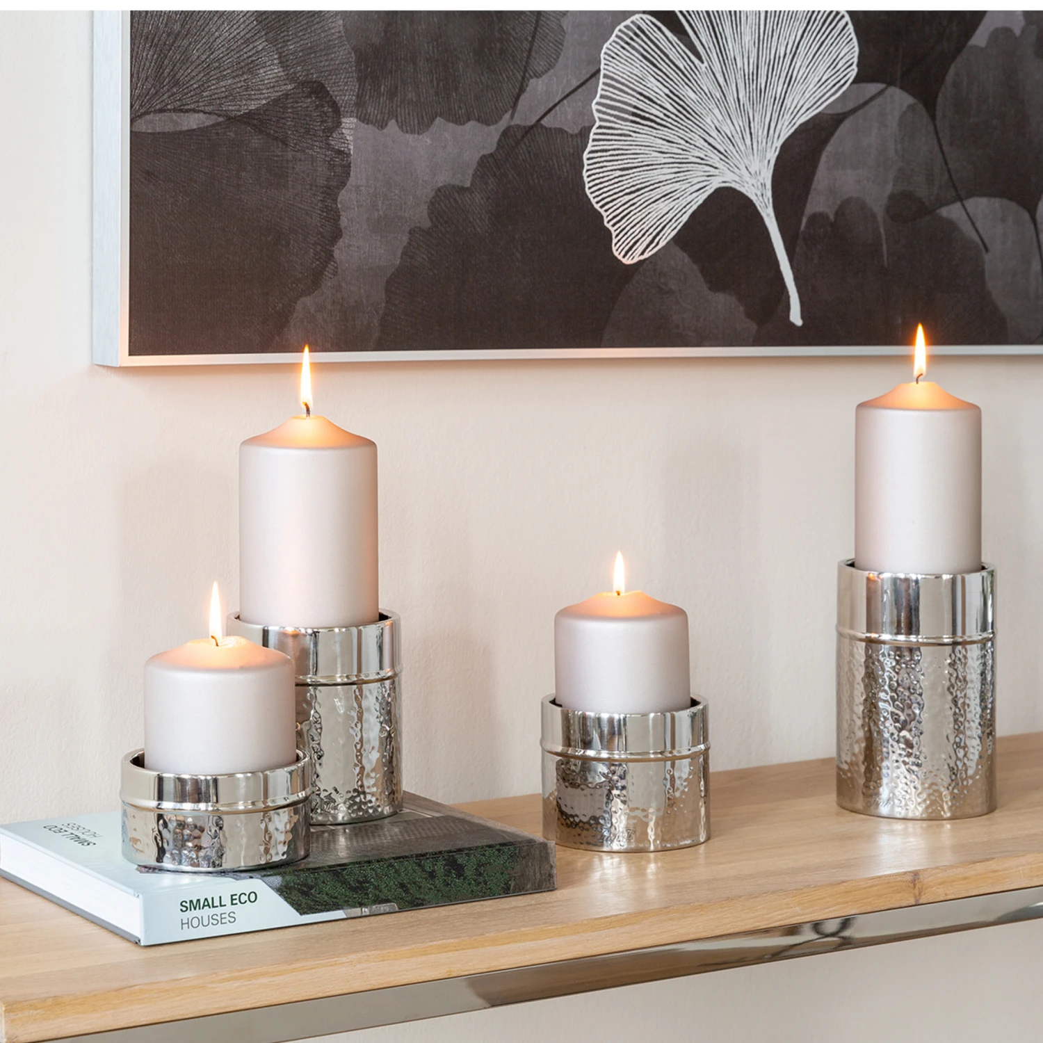 Fink Living Stumpenhalter NASSAU Material: Edelstahl, gehämmert Die Stumpenhalter werden OHNE Kerze geliefert. Geeignete Kerzengröße D 8cm. Fink Produkte: – hochwertige Handarbeit |
