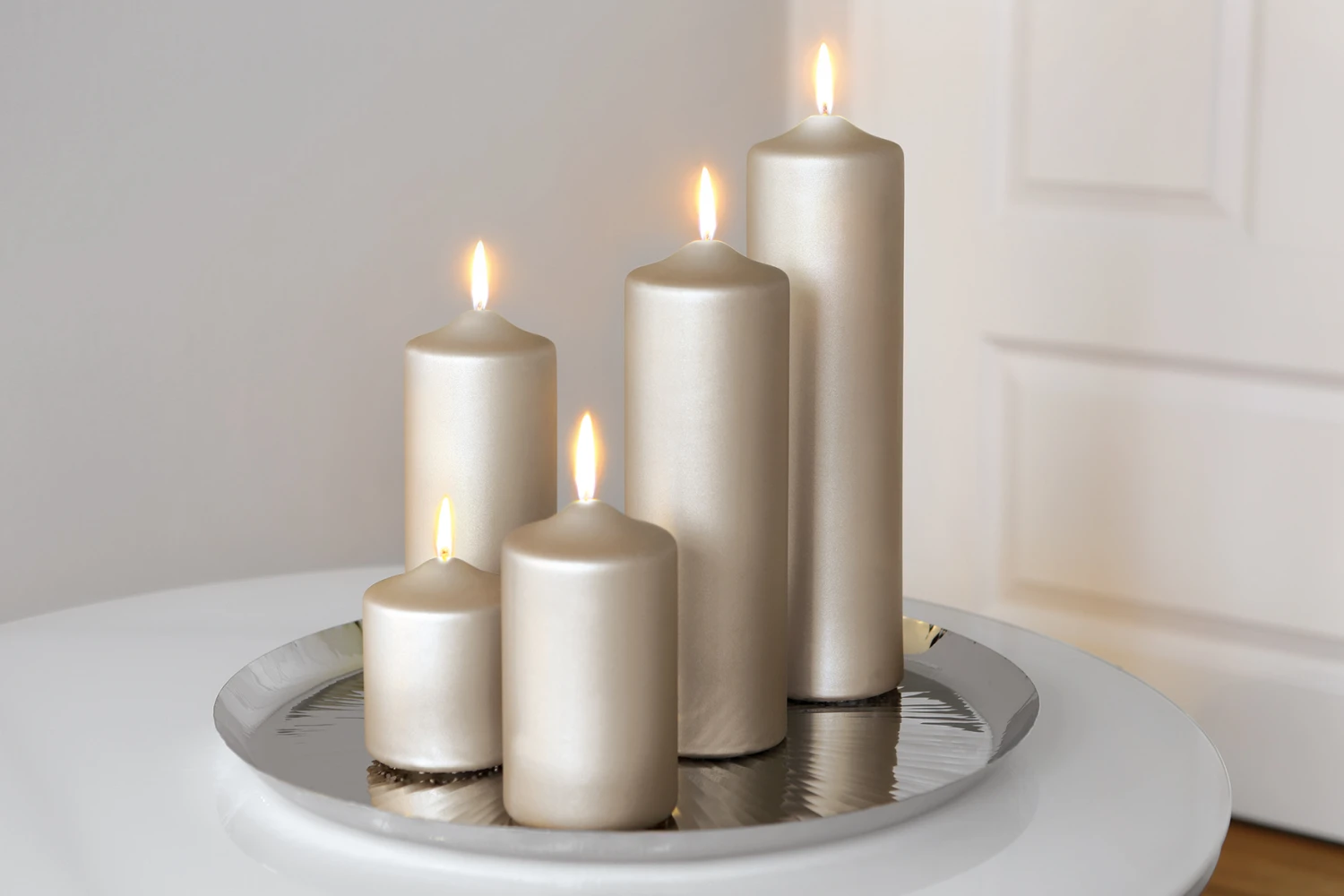 Fink Living Stumpenkerze Matallic Stein getauchtMaße: H 10 cm, D 8 cm |