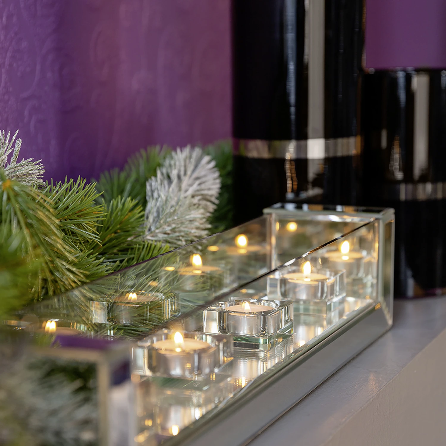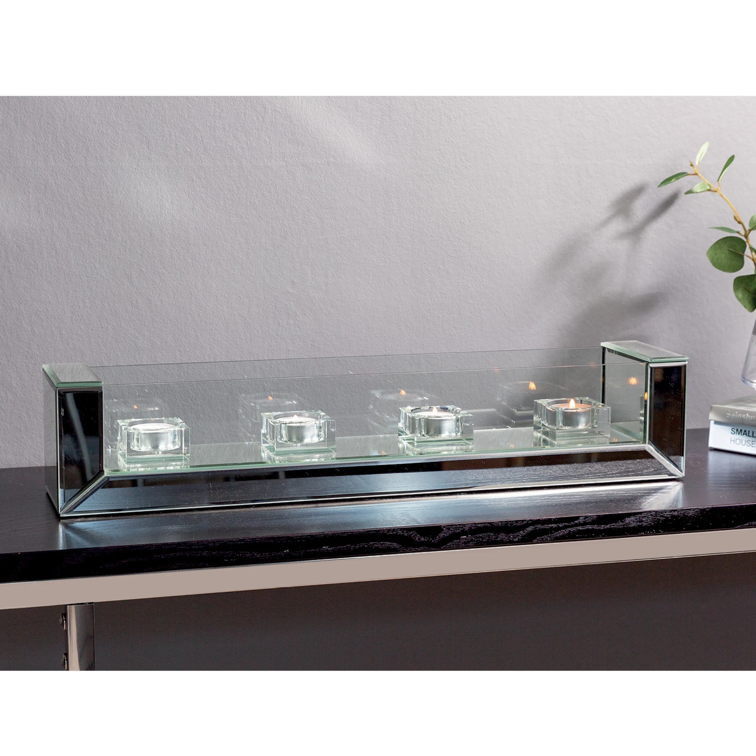 Fink Living Teelichthalter DILARA Maße: H 10cm, 53×11 cm Für normale Teelichter geeignet. Der glamouröse Teelichthalter DILARA beeindruckt nicht nur mit geometrischen Design, sondern auch durch besonderen Chic und verspiegeltem Glanz. Der Kerzenschein spiegelt sich in den Flächen und Kanten und sorgt für ein schönes Licht. Mit großem handwerklichem Geschick wird jedes einzelne Glasobjekt in einem aufwendigen Herstellungsprozess in einer Glasmanufaktur gefertigt. |