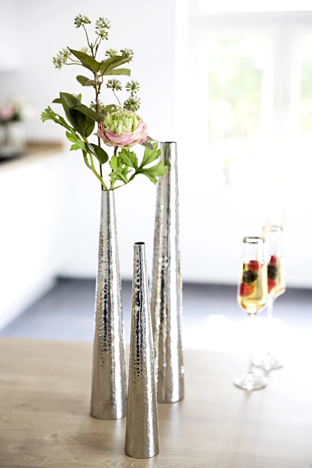 Fink Living Vase CUBA Material: Edelstahl Die CUBA Vasen gibt es in drei verschiedenen Größen. Sie eignen sich perfekt für einstielige Blüten oder kleine Äste. |