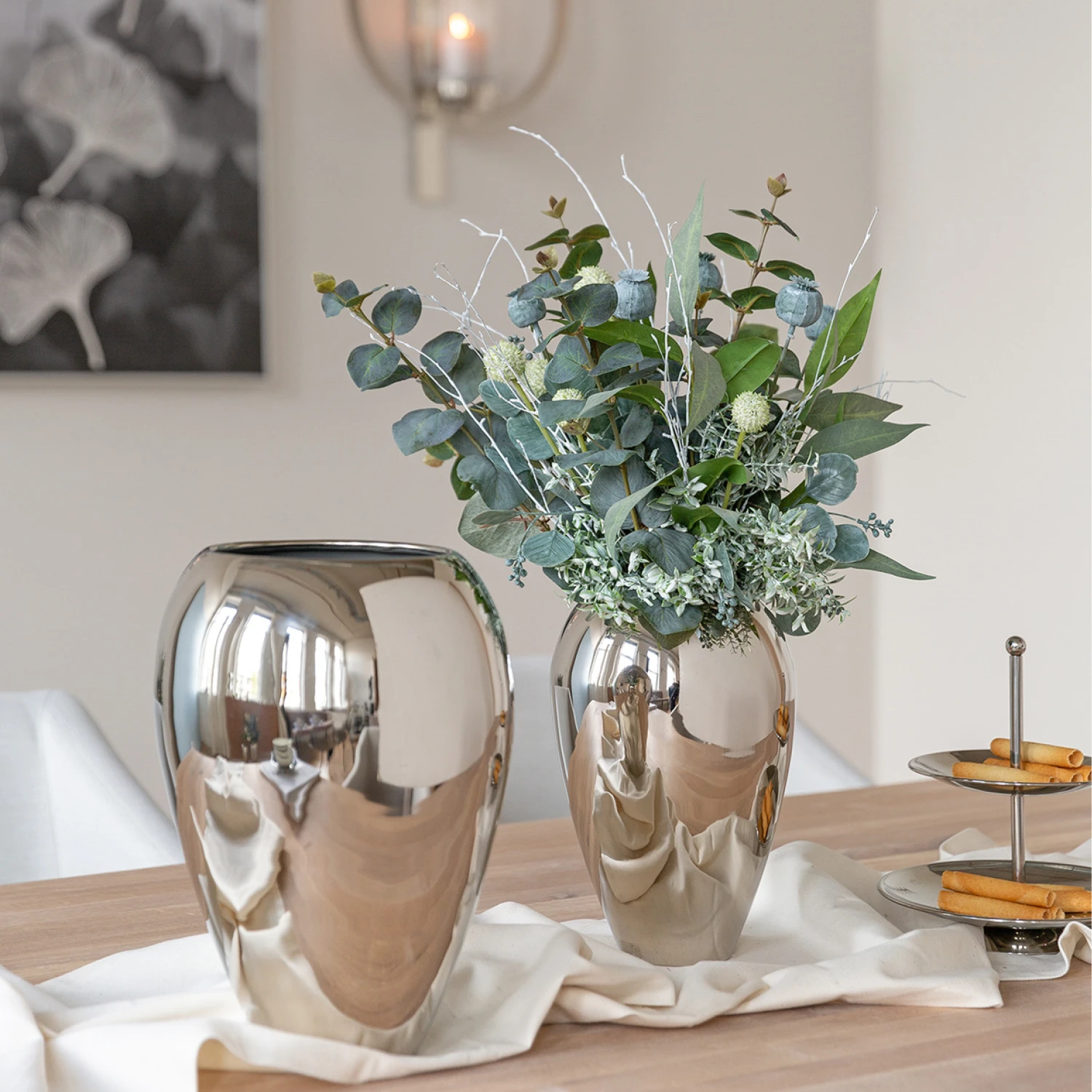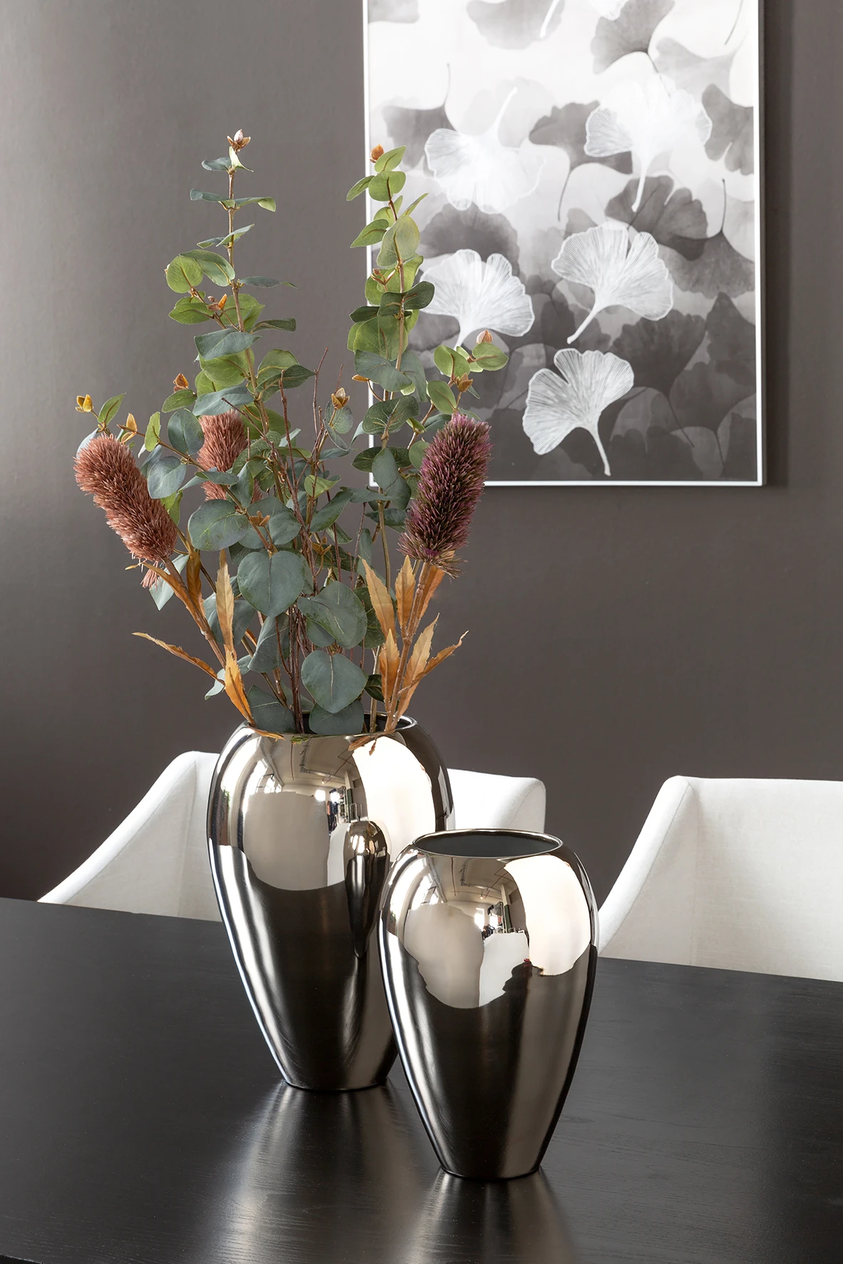 Fink Living Vase MALANA Material: Eisen, vernickelt Die Vase MALANA überzeugt durch eine zeitlose und zurückhaltende Formensprache. Von gefertigt aus glänzend veredeltem Metall ist sie unempfindlich gegenüber Wasser und eignet sich dank der großen Öffnung für eine Vielzahl an Blumendekorationen. Zwei Größen und zwei verschiedene Ausführungen sind erhältlich: Entscheiden Sie sich für das Modell mit glänzend-glatter Oberfläche oder für die Version mit kunstvoll in Handarbeit gefertigter Hammerschlagstruktur. Fink Produkte: – hochwertige Handarbeit |