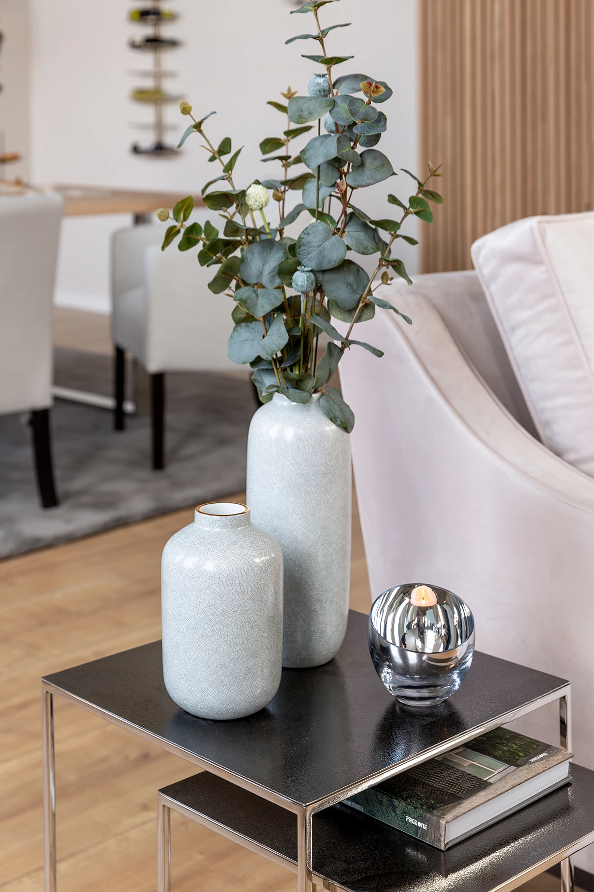 Fink Living Vase ROY Material: Porzellan ROY hat eine dekorative Oberfläche mit spannenden Details. Sie entsteht durch eine hochwertige Abziehbild Technik in Handarbeit. Der edle Grauton und der handbemalte goldfarbene Rand geben der Vase einen Objektcharakter. Die Vasen werden in traditioneller Handarbeit hergestellt – jedes Stück ist ein Unikat. Optimal lässt sich die Vase mit langstieligen Blumen oder Zweigen bestücken. ROY gibt es in zwei Größen. |