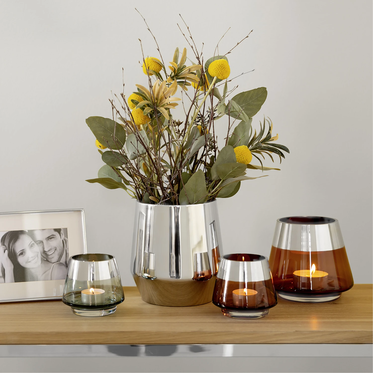 Fink Living Vase/Übertopf LINEA Material: Edelstahl Die Metallgefäße LINEA sind auch als edle Übertöpfe einsetzbar. Bezüglich ihrer Formensprache sind sie auf die Windlichter aus Glas der Fink-Serie LINEA abgestimmt und erlauben so geschmackvolle Kombinationen. Die Metallvasen sind in zwei Größen erhältlich und Outdoor geeignet. |