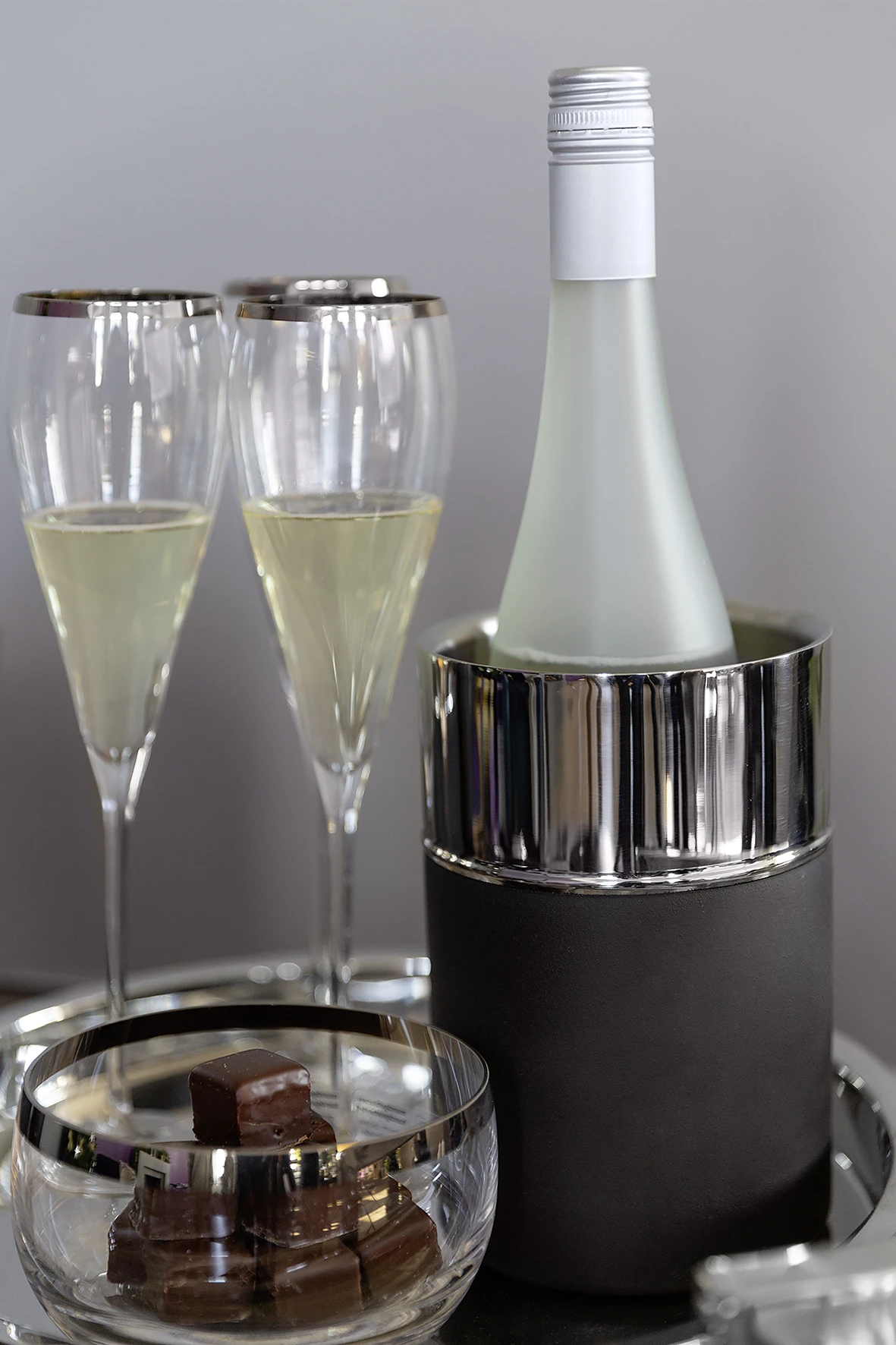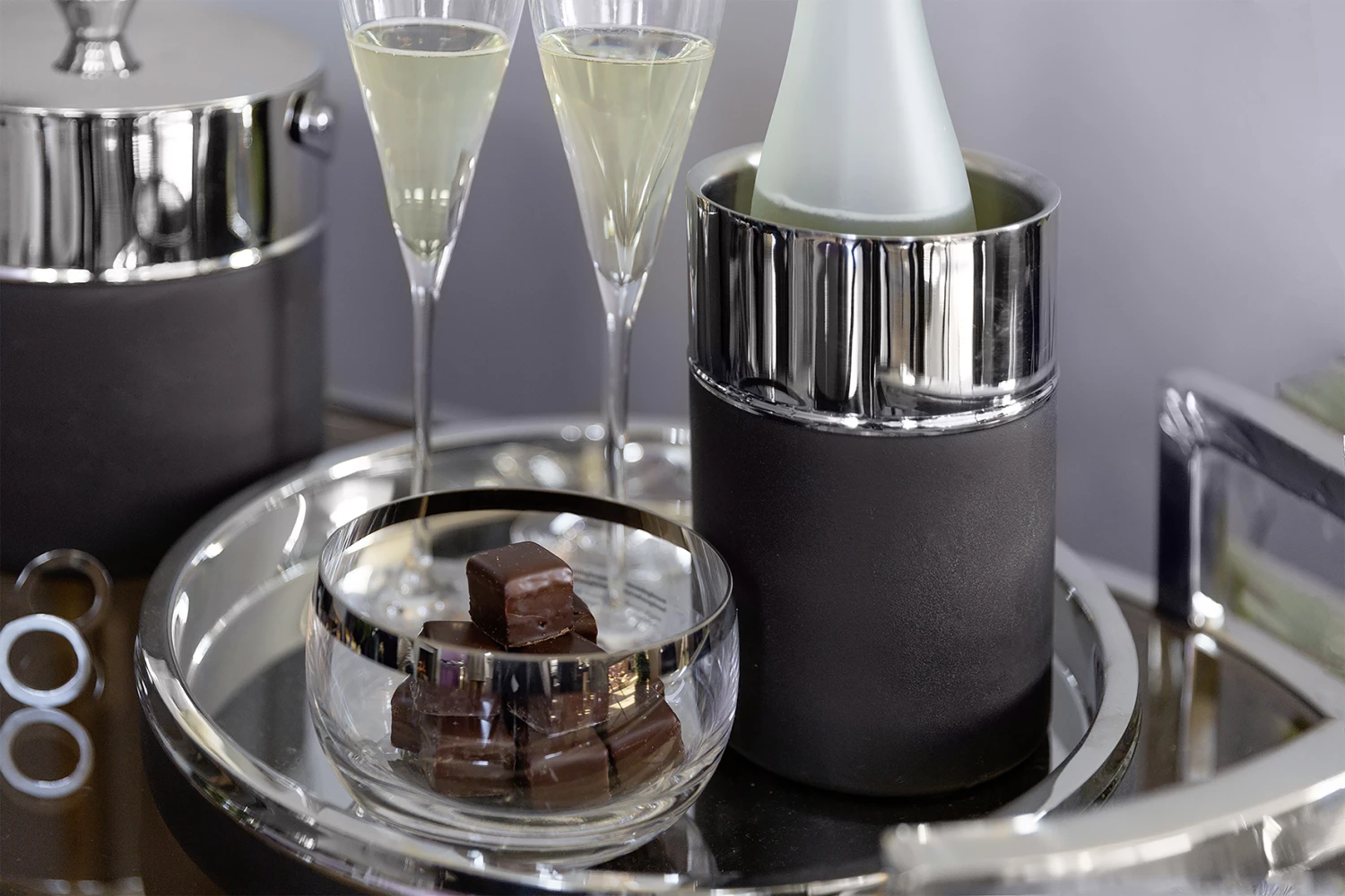 Fink Living Weinkühler ANDOR Material: Edelstahl glatt, pulverbeschichtet schwarz matt Zeitlose Formensprache und hochwertige Metallveredelung prägen den modernen Look dieses Kühlers. Der Kontrast zwischen glänzend polierter Oberfläche und der mattschwarzen Beschichtung verleiht dem Kühler eine besonders exklusive Note und macht es zu einem hochwertigen Bestandteil moderner Tischkultur. Der Kühler ist doppelwandig und hält dadurch besonders lange kühl. Die Serie ANDOR bestehend aus Eisbehälter, Weinkühler, Cocktailshaker, Tablett und Punchbowl und ist aus pflegeleichtem, lebensmittelgeeigneten Edelstahl gefertigt und garantiert Ihnen ganz besondere Genussmomente für die Sinne. |
