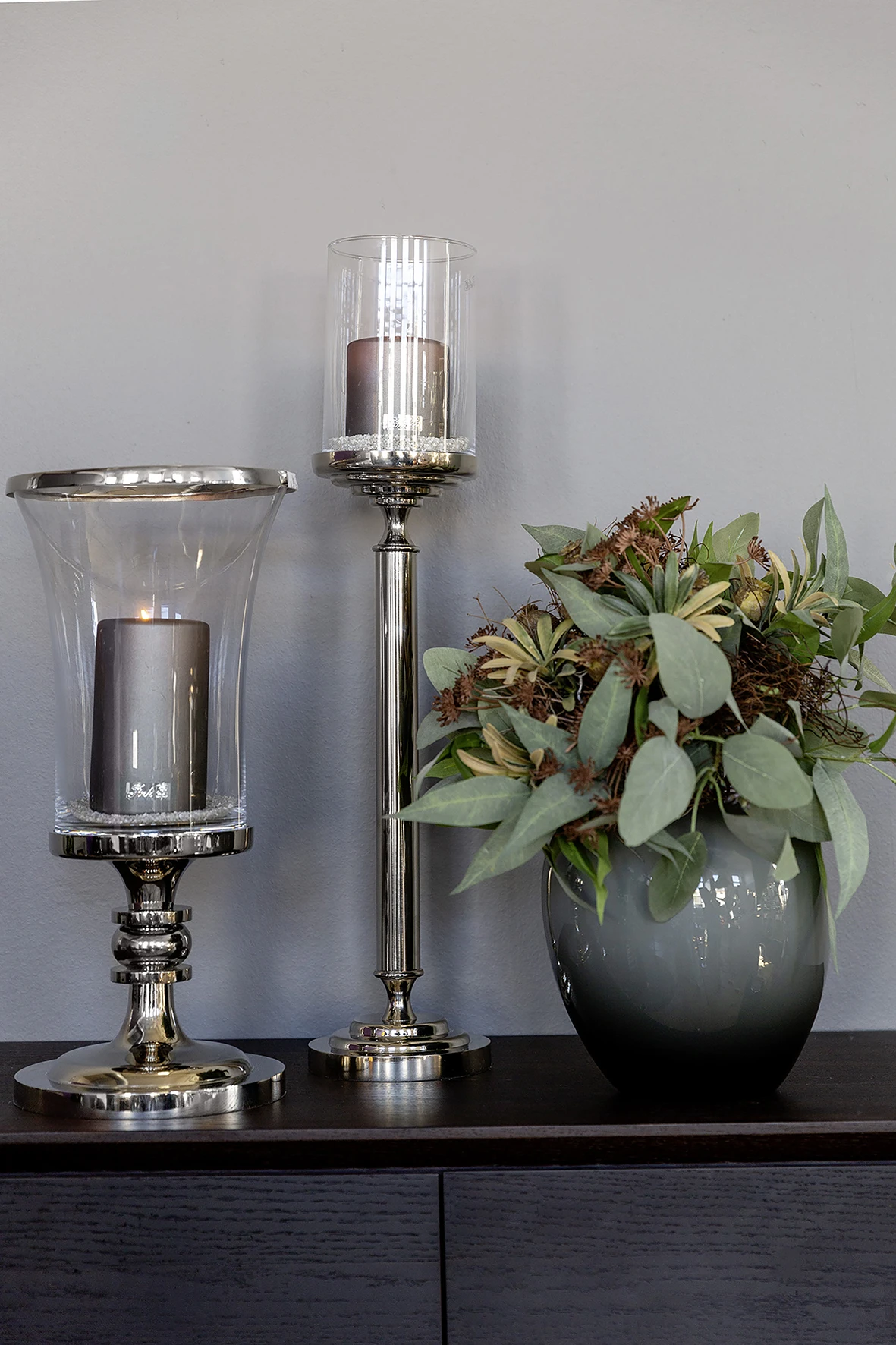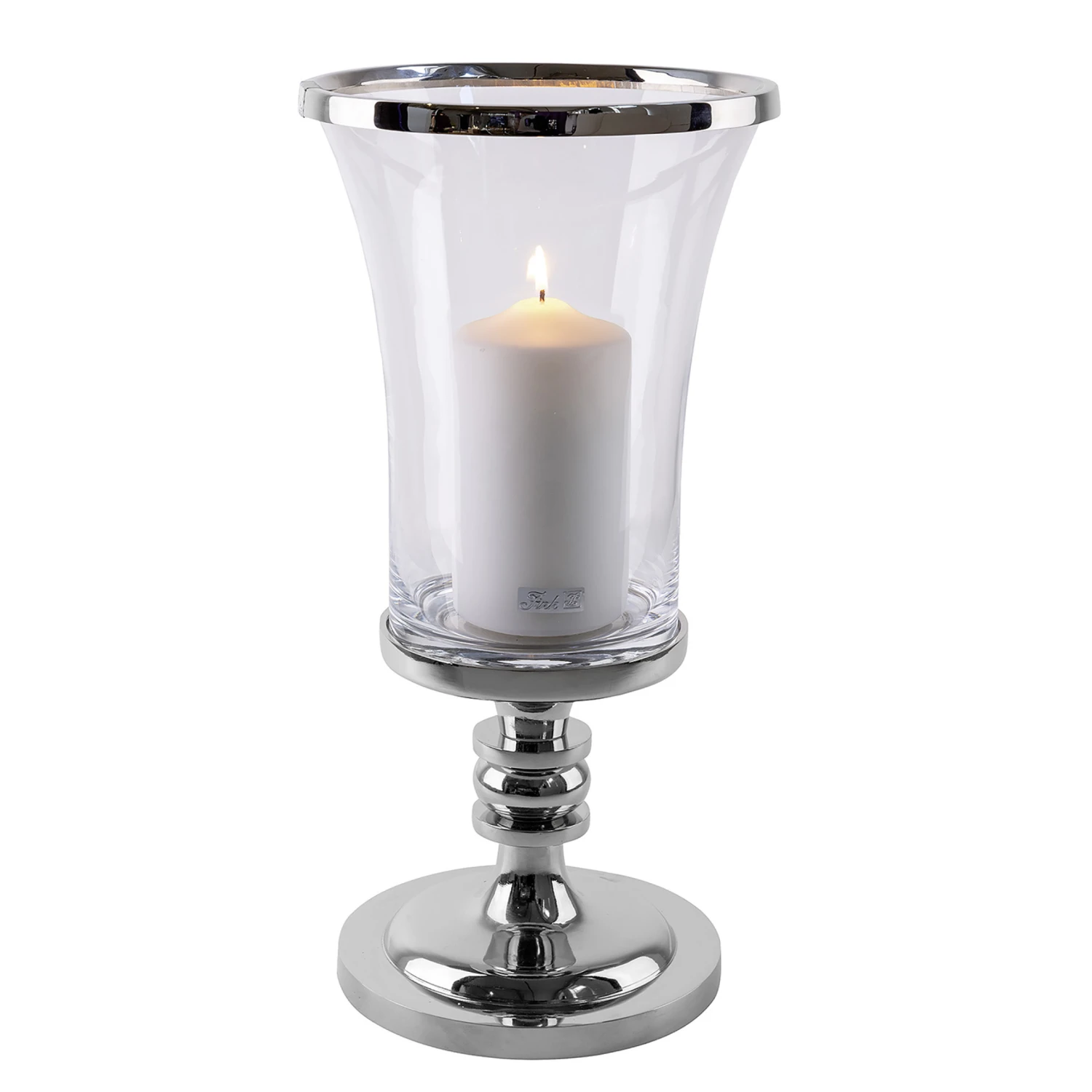 Fink Living Windlicht Lynette Material: Aluminium, vernicklet, Glas Maße: H 42cm, D 18cm Geeignete Kerzenhöhe: D 8cm, H 10/15cm Hinweis: Das Windlicht wird ohne Kerze geliefert |